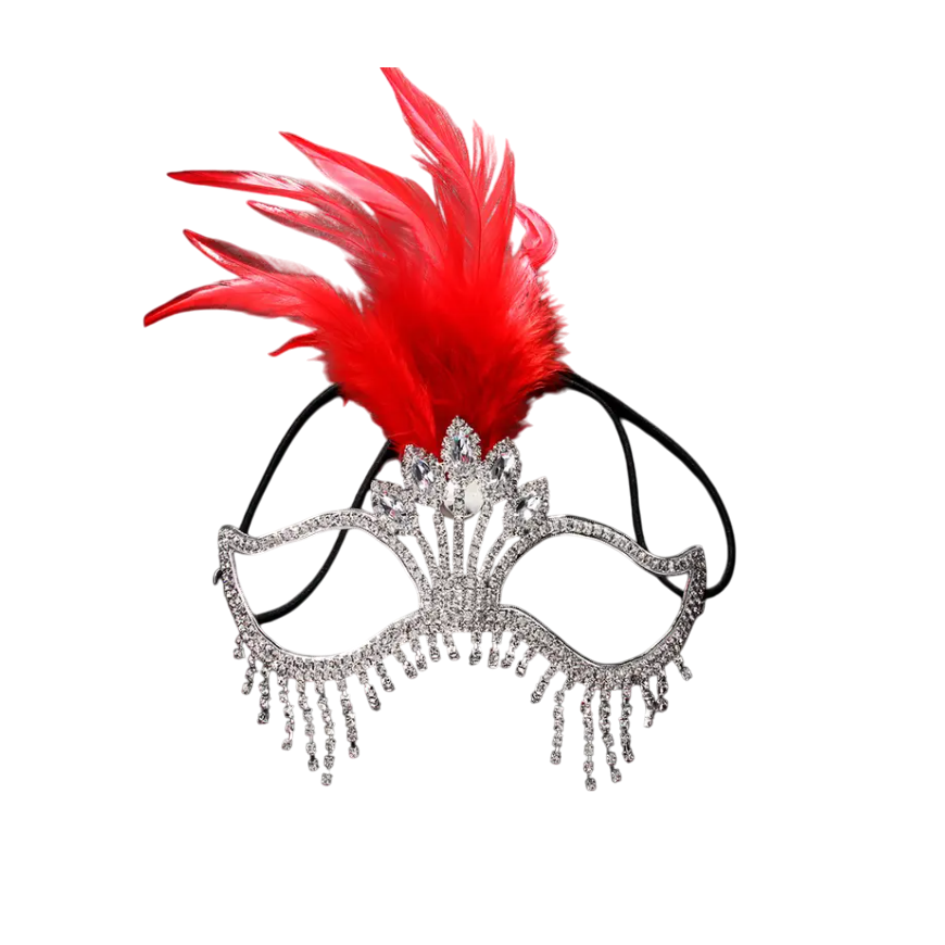 La location de masques à strass et plumes rouges et blanches sur Lyon seront les accessoires parfaits pour votre costume cabaret.