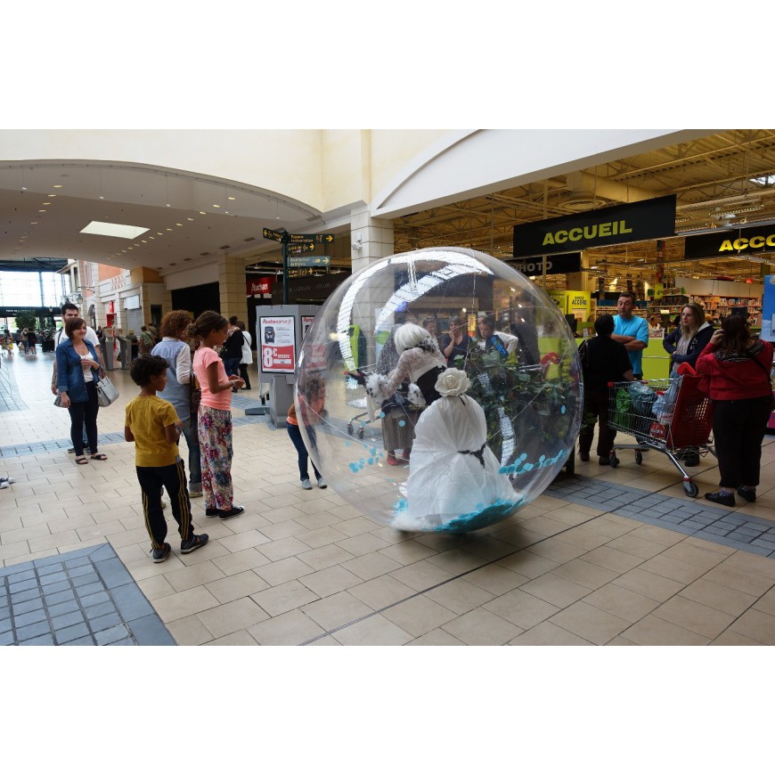 Une soufflerie anime et maintient cette bulle géante de 2 m de diamètre réalisé en PVC souple et à l'intérieur s'y trouve un artiste de spectacle. Un univers où l’imagination et le rêve fusionne. Un concept très tendance, une ou plusieurs Bulles géantes installées en quelques minutes, vous permettront de mettre en avant une performance artistique, originale, hors du commun et très visuelle.