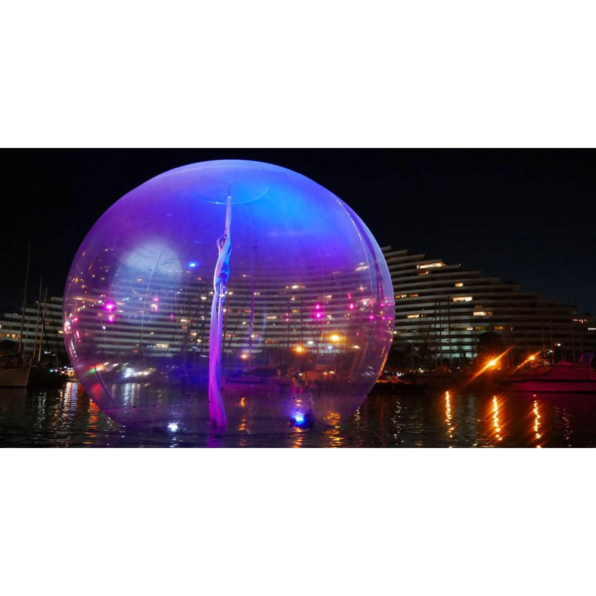 Découvrez ci-dessus un exemple de spectacle avec une bulle encore plus grande que que nos bulles de 2 m de diamètre.