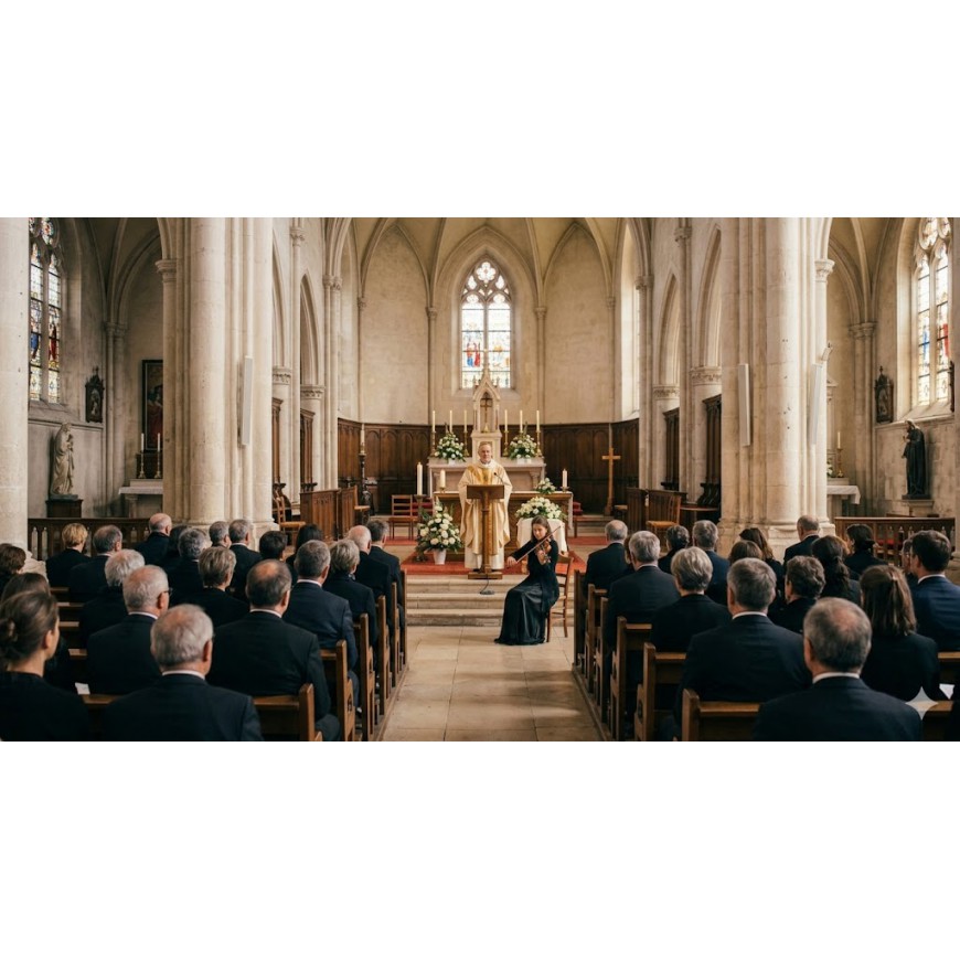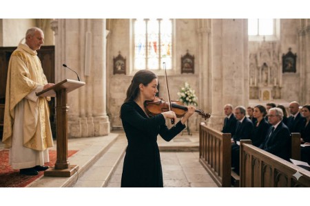 Note pratique : Au cimetière, les instruments facilement transportables sont privilégiés (violon, guitare, flûte, parfois harpe). Certains musiciens utilisent aussi un système léger de sonorisation portables sans fil et sur batterie pour être entendus en extérieur.
