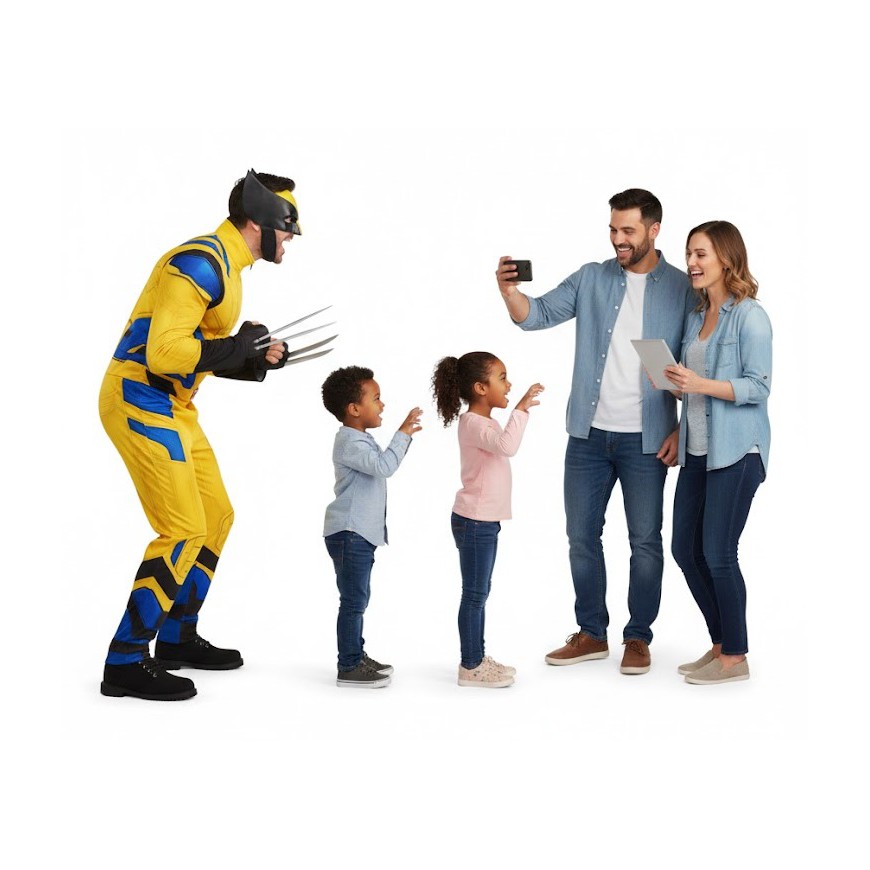 Vous organisez un arbre de Noël, une fête de quartier, une animation en centre commercial ou un anniversaire mémorable près de Lyon ? Faites appel à notre performer cosplay spécialisé pour incarner Wolverine le plus sauvage des mutants.