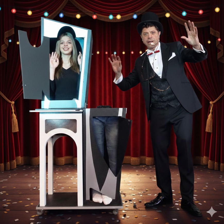 | Options | Nous vous conseillons fortement d'ajouter au devis le numéro de la femme coupée, certes un spectacle classique, mais qui plait énormément aux personnes âgées. Dans ce cas, notre magicien viendra accompagné de sa partenaire moyennant un tarif complémentaire. Nous consulter. |