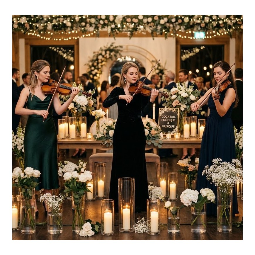 Une animation musicale d'exception pour vos événements près de Lyon Passionnées et formées dans les plus grands conservatoires, nos violonistes féminines apportent élégance, émotion et raffinement à tous types d'événements. Que vous organisiez un mariage intimiste, une soirée de gala, un cocktail d'entreprise, une inauguration ou un anniversaire, nous adaptons notre formule à votre projet et à votre budget.