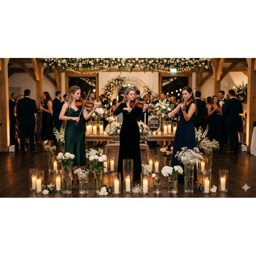 • Trio de violons — La formule la plus complète pour les grandes réceptions, mariages, galas et inauguration de prestige.