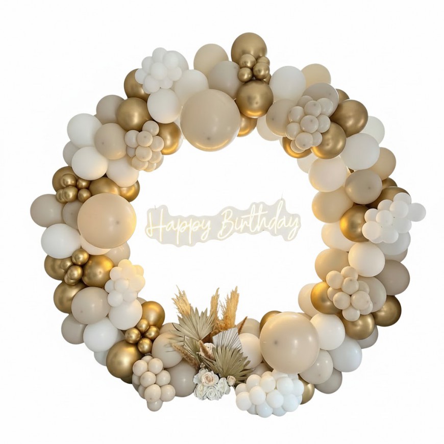 Créez une ambiance originale avec l'arche de ballons organique ronde à la location sur Lyon. Ajouter une petite touche fun à vote décoration de mariage, anniversaire, baptême, baby shower… L'arche de ballons ronde et organique sera idéale pour un stand photo, une décoration personnalisée à votre image !