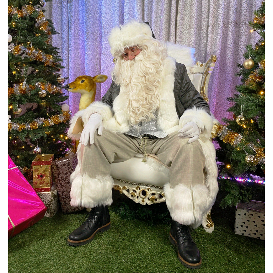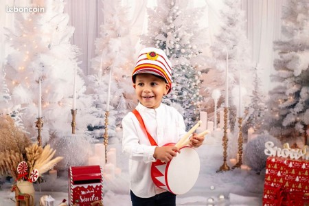 Nous vous proposons en option un Père Noël thème Nature, neige, blanc, marron, champagne, foret… devant cette magnifique toile de fond pour vos plus belles photos.