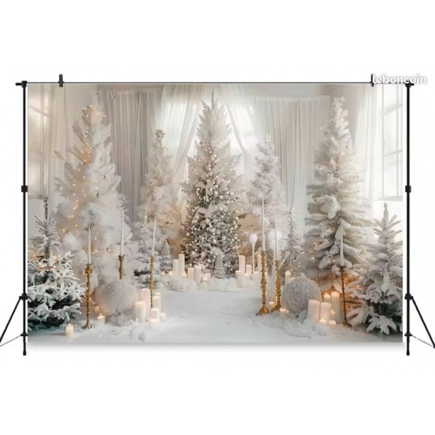 Pour un stand du père Noël de qualité et pas chère ! Vous sublimerez vos photos souvenirs avec ce fond de Noël thème BLANC et NEIGE. Cette toile de fond sur le thème de Noël sera idéale pour une toile de fond pour une séance photo et stand photo. Le fond de Noël haute définition est d'excellente qualité, sans soudure, sans plies, sans rides, léger et non réfléchissant.