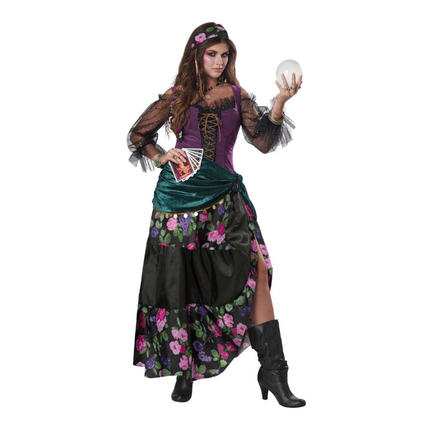 Soyez la femme qui prédit l'avenir dans les cartes, dans les lignes de vos mains ou dans sa boule de cristal avec la location de ce très beau déguisement.