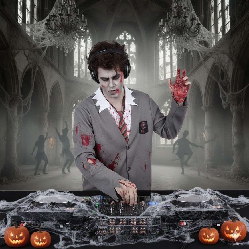 offrez-vous un DJ pour Halloween et organisez-leur le Bal des Vampires, une MEGA-boum sur le thème Halloween pour une superbe fête d'Halloween branchée. Notre disc-jockey HALLOWEEN enflamme votre piste de danse lors de la fête d'Halloween, Le DJ passe les derniers tubes en vogue, sa prestation comprend :
