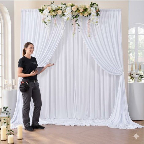 Grâce à sa matière en lycra, ce rideau blanc est infroissable et n'a pas besoin de repassage, c'est le produit idéal pour la location de décoration de mariage sur Lyon, car on a pas toujours sur sois un fer à repassé.
