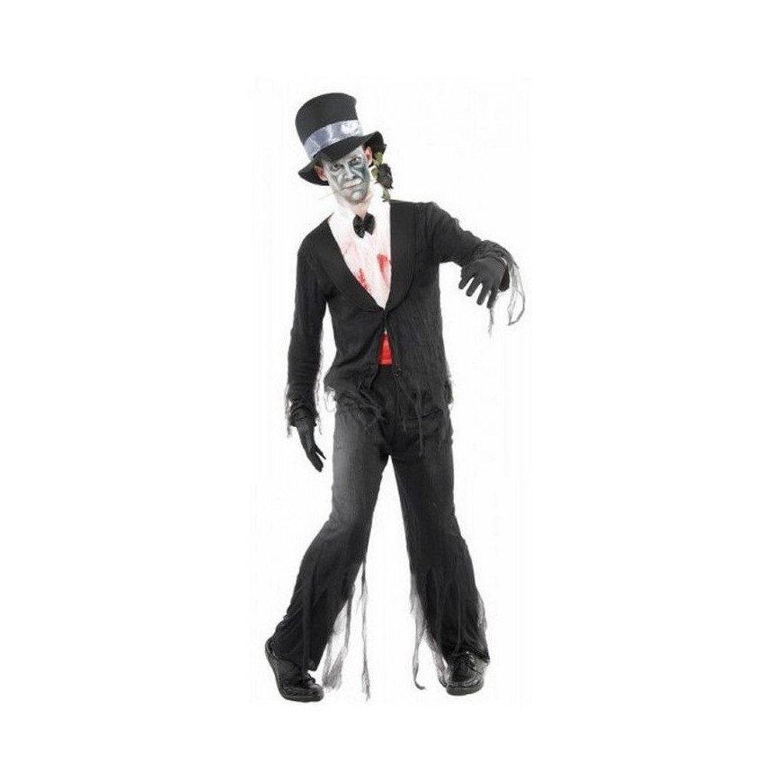 Ce déguisement représente un jeune marié mort-vivant dans son costume avec nœud papillon à la location pour votre fête d'Halloween sur Lyon, transformez-vous en mort-vivant, soyez ce personnage le temps d'une fête déguisée sur le thème d'Halloween et Horreur.