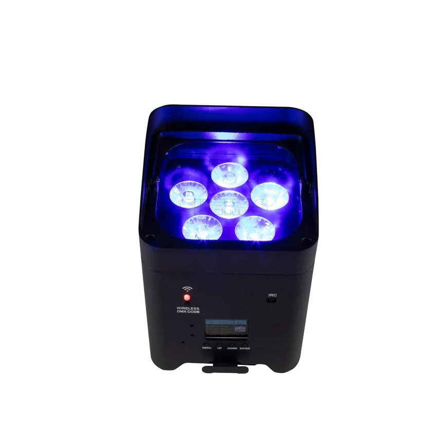 • Modèles de LEDs 6en1 RGBWA + UV Fonctions Strobe + Contrôlable en Wi-Fi via smartphone Dimmer 0-100% linéaire (8 bits) Ports / Connecteurs Connecteur DMX 3 points IN/OUT.