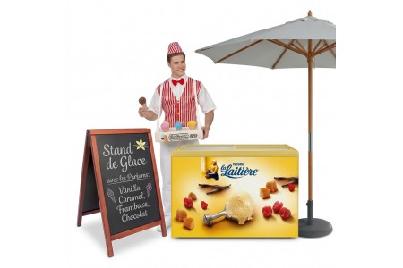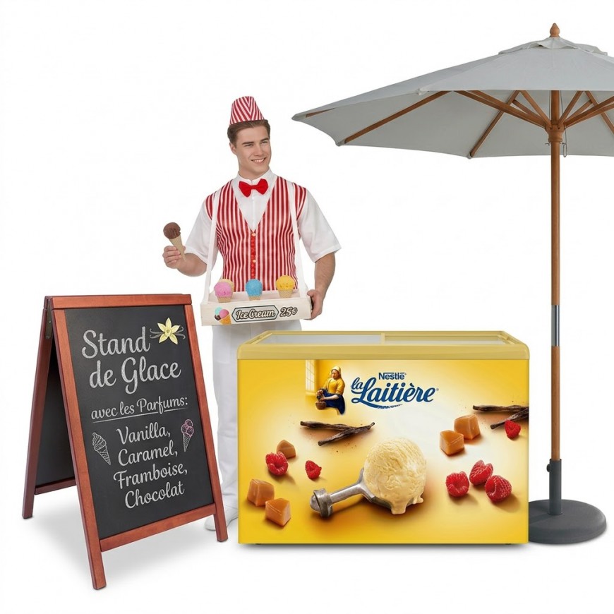 le marchand de glace comme certains les appel ou bien le Glacier avec sa vitrine à glace près de vos invités en offrant des glaces en petit pots ou bien en cornets, notre glacier est capable de distribuer jusqu'à 200 Glaces simple/heure, une animation culinaire phare pour vos mariages champêtres, baptêmes, comités d’entreprise, communions, réunions familiales, kermesses, coupe de cheveux, Barmisvah, festivals, brocantes, associations, événements publics, Garden party, etc.