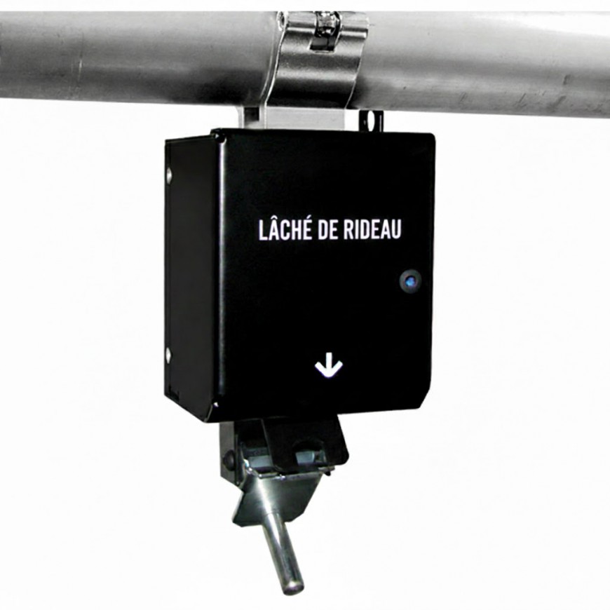 Notre système lâche en 1 seconde, un rideau, une toile tendu, des voiles ou tout élément textile de petite ou grande dimension. L’effet est instantané, aidé par la gravitation du poids du tissu, le rideau s’effondre de façon homogène, laissant apparaître l’élément de scène à mettre en valeur. Vos spectateurs sont ébahis et séduits !