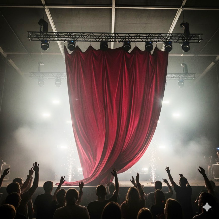 Voici un système de déclenchement rapide et simple qui permet de faire tomber un rideau instantanément pour révéler un produit, une scène ou un artiste.