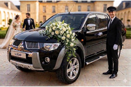 | Options | En option durant la balade : nous vous proposons dans le véhicule, champagne, mignardises... A votre arrivée : tapis moquette, potelets pour haie d'honneur, pétale de roses, artifices et confettis, Groom pour accueillir les mariés ... |