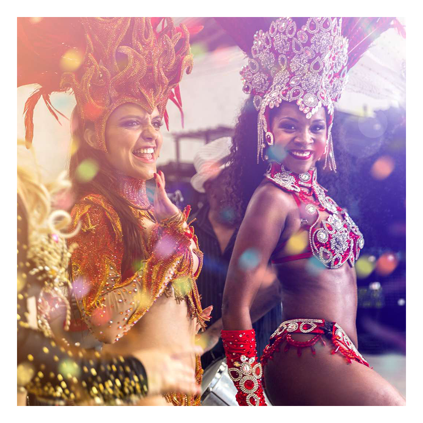 1 magicien Italien, 1 comédienne Brésilienne et 2 danseuses Brésiliennes, nous vous proposons de pousser encore plus loin dans le folklore traditionnel du Brésil et vous proposer en plus si votre budget le permet des :