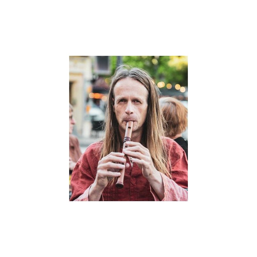 Cet artiste joue de la musique médiévale et des poèmes évocateurs du temps des troubadours du XI au XIII siècle à la flûte. Dans ces airs, on y trouve des danses très vives comme la saltarelle, L'estampies... il utilise une flûte à bec, il se positionne en poste fixe ou en déambulatoire avec plusieurs types de flûtes accompagné d'un conteur qui raconte des histoires pour les enfants et jongle, ce dernier est une option.